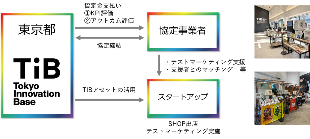 「TIBにおけるテストマーケティング等プロジェクト実施事業」は、TIBをスタートアップの製品やサービスのテストマーケティング・ショーケーシングの場として運営するとともに、スタートアップとそれを支援する様々な企業や自治体等との繋がりを生み、国内外の市場への展開をはじめスタートアップの成長を後押しする取組です。